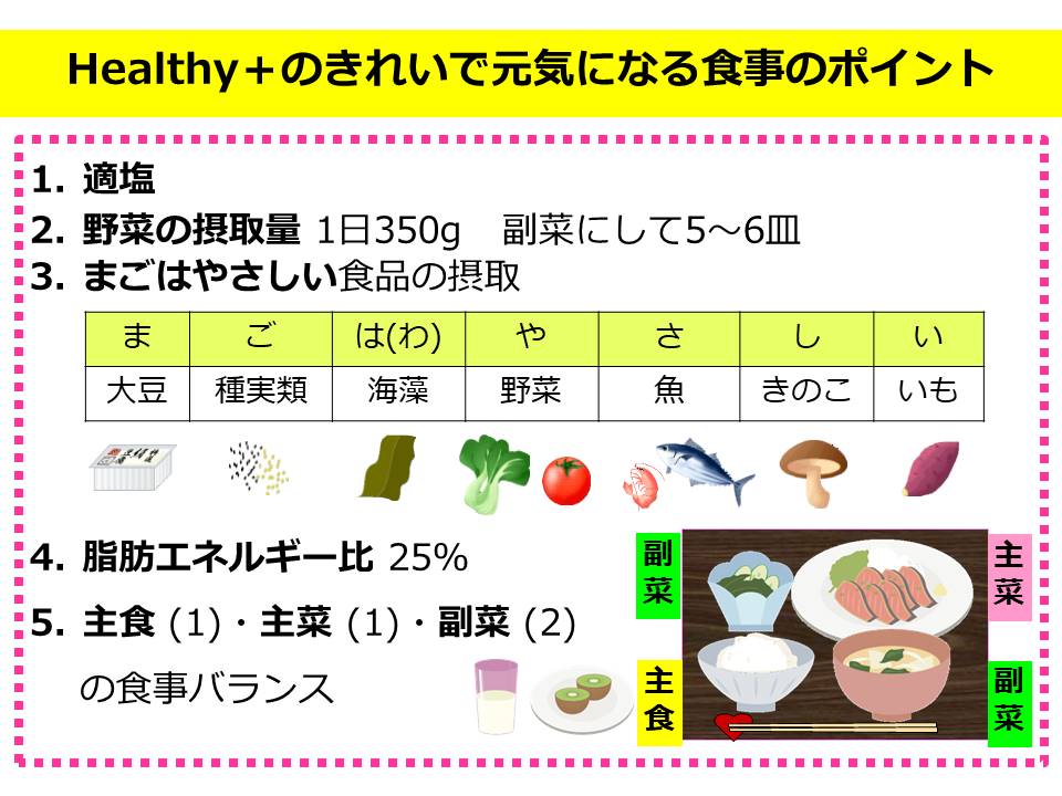 実は、食育という言葉を日本で最初に使った石塚左玄さんは、福井県の出身です。明治31年に「通俗食物養生法」で説かれている養生論で既に「陰陽調和論(ナトリウム・カリウム均衡食論」の記載があり感銘を受けました。また、小浜市出身の杉田玄白先生も西洋医学の権威ですが、庶民にもわかりやすい養生訓で「医食同源」を説かれています。福井県は今でも食材が豊かな土地であることから、その豊かな食材を利用した美味しい「適塩でまごはやさしい」献立を作ることも可能なのではないかと思っています。献立のヒントは、食育グループHealthy+のホームぺージでも紹介していますので、ご興味のある方は、是非、ご利用いただきたいと思います。